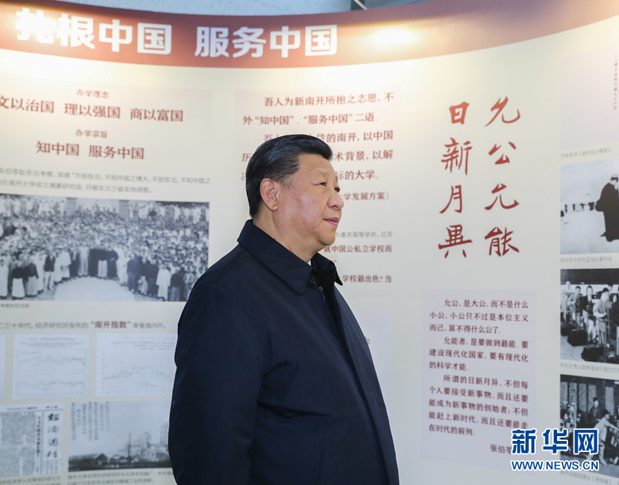1月16日至18日,中共中央總書記、國家主席、中央軍委主席習(xí)近平在京津冀考察,主持召開京津冀協(xié)同發(fā)展座談會(huì)并發(fā)表重要講話。這是1月17日上午,習(xí)近平在天津南開大學(xué)參觀校史展覽。 新華社記者 謝環(huán)馳 攝