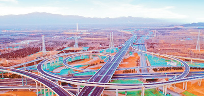 從高空俯瞰京禮高速營(yíng)城子立交,四通八達(dá)、層層交疊(1月22日攝)。本報(bào)記者 賀勇攝