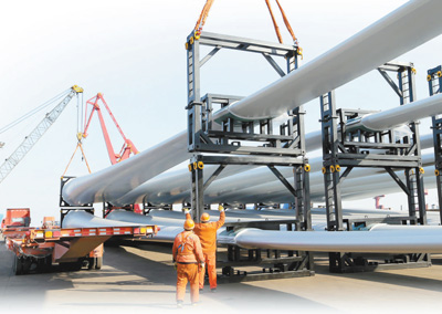 近日,大批國產(chǎn)成套風電設備在江蘇省連云港港口集港準備出口澳大利亞。