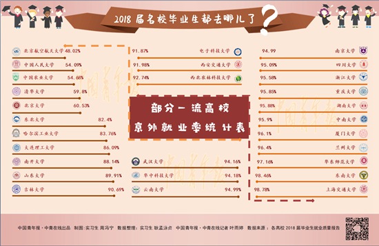 一直以來(lái),“北上廣”是高校畢業(yè)生心中的“白月光”,即使沒戶口,去一線城市闖一闖也是不少大學(xué)生的共識(shí)。然而記者梳理后發(fā)現(xiàn),一流高校畢業(yè)生的京外就業(yè)率普遍超過(guò)50%。