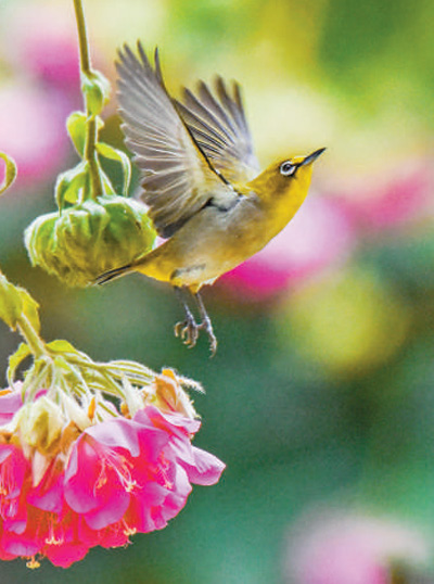 廣西南寧市近日氣溫最高達(dá)到21攝氏度,南湖公園的芙蓉花盛開,吸引了大量的鳥兒。彭 寰攝(影像中國)