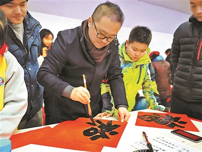 今年春節(jié),平谷區(qū)百名書法家組成的團隊和一眾書法愛好者,通宵達旦徹夜趕寫30萬幅“?!弊趾痛郝?lián),并走街串巷免費送“?!保尦錆M書法溫度的春聯(lián)回歸,讓文化真正惠民。
