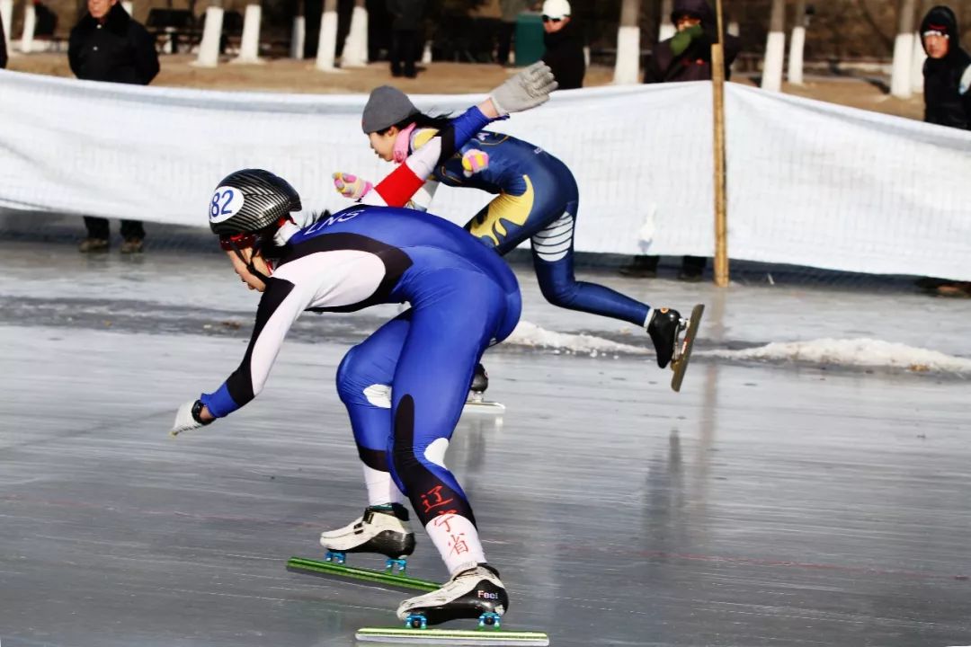2019-01-29,遼寧撫順。2019年遼寧省青少年速度滑冰錦標(biāo)賽上,戴頭盔穿著短道速滑冰刀與穿著速滑脫位冰刀的兩位運動員正在同場競技。作者:周朋