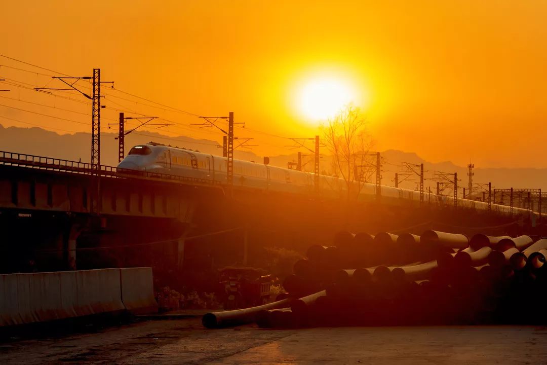 2019-01-21,湖北省利川市。金色陽光下,火車飛馳而來。作者:六哥