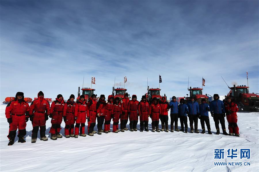 2月4日農(nóng)歷大年三十,部分內(nèi)陸隊(duì)員在南極冰蓋上合影。2月5日大年初一,中國(guó)第35次南極科學(xué)考察隊(duì)兩支內(nèi)陸隊(duì)——昆侖隊(duì)和泰山隊(duì)的37名隊(duì)員,繼續(xù)以中國(guó)南極中山站為目標(biāo),奔馳在茫茫的南極內(nèi)陸冰蓋上,在冰天雪地中度過了農(nóng)歷豬年第一天。新華社記者 劉詩(shī)平 攝