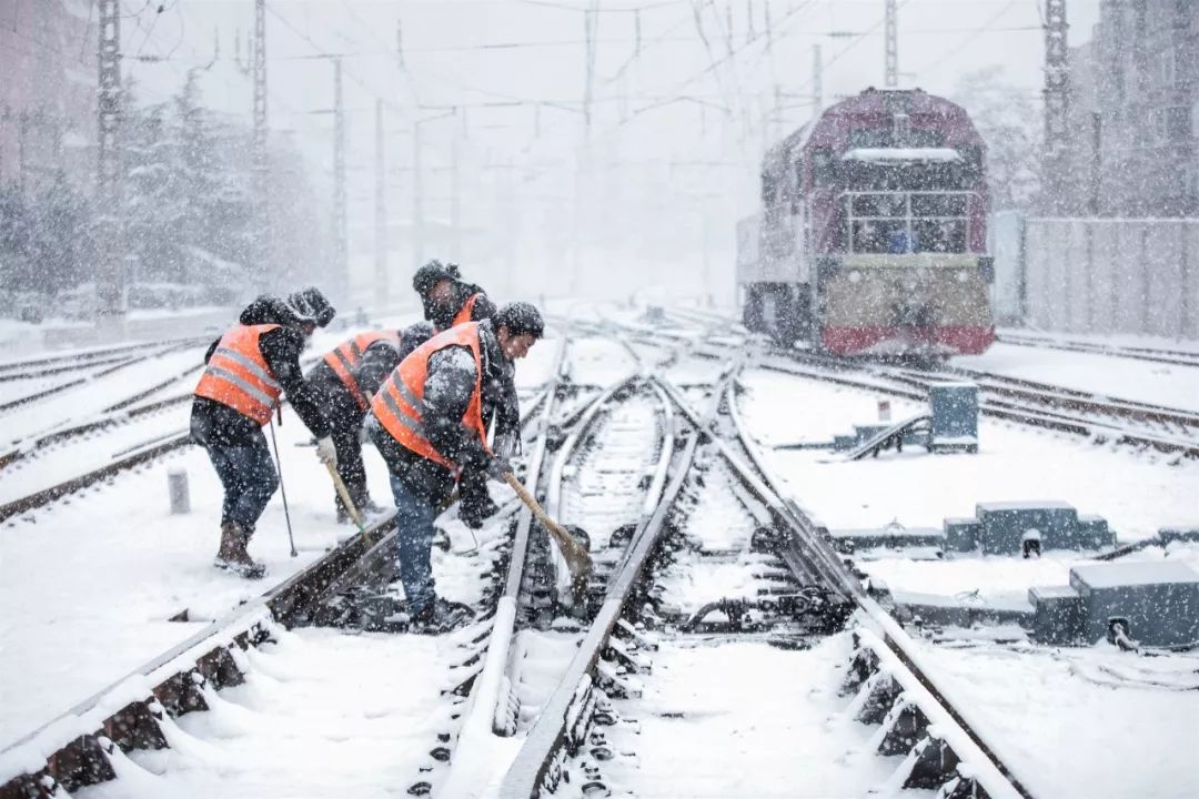 2019-02-02,遼寧省大連市。鐵路人清掃道岔,保障春運(yùn)期間旅客乘坐的列車(chē)安全、正點(diǎn)。作者:曹哲爽