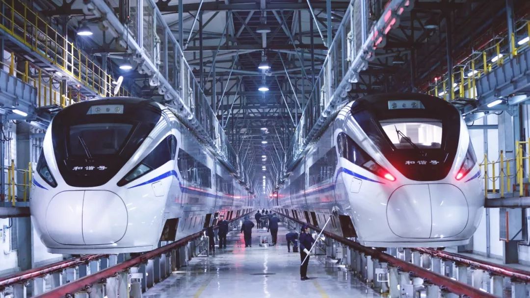 2019-01-08,福建福州。凌晨?jī)牲c(diǎn),在福州南動(dòng)車(chē)所內(nèi),機(jī)械師和保潔員們還在忙著檢修清潔動(dòng)車(chē)組,確保第二天準(zhǔn)時(shí)上線(xiàn)。作者:嗯叮