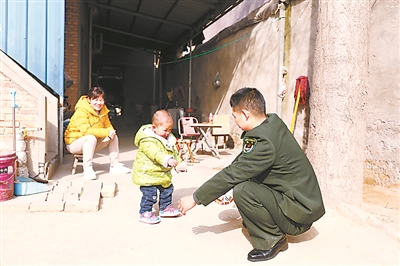 冬日溫暖的陽光灑在農(nóng)家小院內(nèi),董星濤開心地與兒子玩起了皮球。聞蘇軼攝