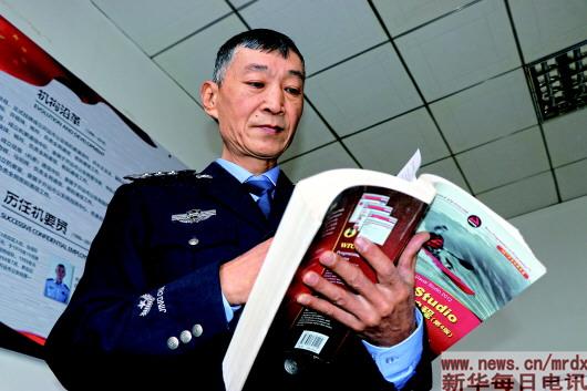 ▲陳昆平查閱軟件系統(tǒng)開發(fā)的書籍。(當(dāng)?shù)毓矙C(jī)關(guān)供圖)