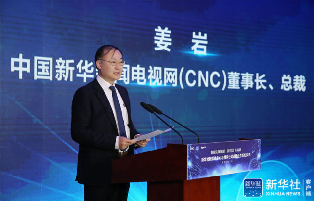 2月19日,新華社聯(lián)合搜狗公司在京發(fā)布全新升級(jí)的站立式AI合成主播并推出全球首個(gè)AI合成女主播。圖為中國(guó)新華新聞電視網(wǎng)有限公司(CNC)董事長(zhǎng)、總裁姜巖致辭。新華社記者 肖磊濤 攝