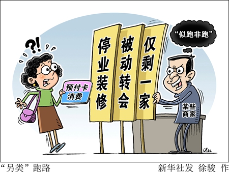 預(yù)付卡商家跑路消失,消費者遭遇維權(quán)難已不是新鮮事。然而記者調(diào)查發(fā)現(xiàn),為了躲避判罰,拖延賠付時間,不少預(yù)付卡商家開始上演“另類”跑路——“停業(yè)裝修”“被動轉(zhuǎn)會”“僅剩一家”等戲碼輪番上演,制造出一種“似跑非跑”的現(xiàn)象,讓消費者陷入維權(quán)困境。