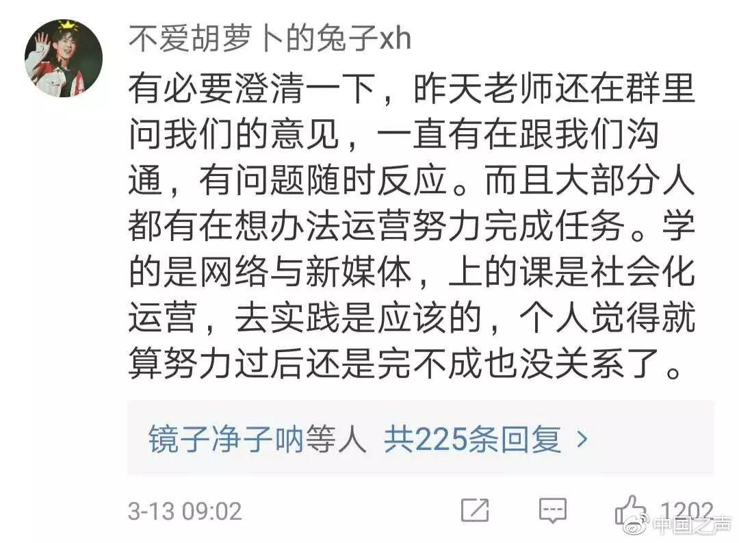 也有學(xué)生認(rèn)為,比起課本上知識(shí),在校學(xué)習(xí)也應(yīng)注重實(shí)踐,有時(shí)候一些課程或課間作業(yè)看似無厘頭,背后也有老師們的良苦用心。不少走上工作崗位的同學(xué),在一段時(shí)間之后才體會(huì)到當(dāng)年自己曾吐槽的那門課程所教會(huì)自己的東西:“大部分同學(xué)有在想辦法完成這樣一個(gè)運(yùn)營(yíng)任務(wù),學(xué)的是網(wǎng)絡(luò)與新媒體,我覺得去實(shí)踐是應(yīng)該的,自己覺得就算努力過后完不完成任務(wù)也沒所謂,你去實(shí)踐了很重要?!?/p>