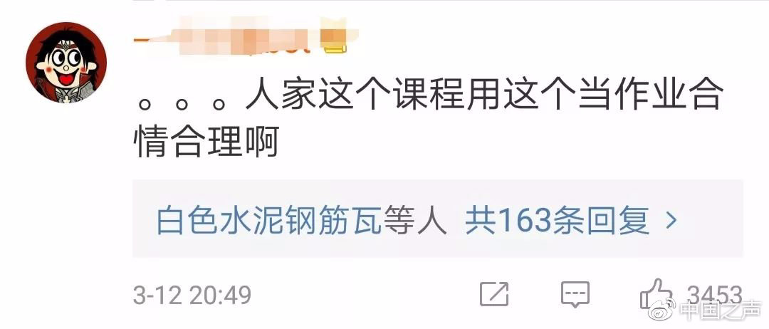 祁?yuàn)檴櫿J(rèn)為,這種創(chuàng)新作業(yè)的方式在大學(xué)里面應(yīng)該鼓勵(lì),而非打壓:“我覺得它體現(xiàn)了創(chuàng)新教育,老師能夠與時(shí)俱進(jìn),我覺得這種出題方式真的是應(yīng)該鼓勵(lì)而不是打壓?!?/p>