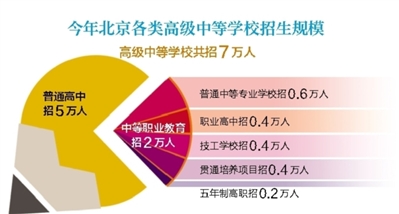 昨天,北京市教委發(fā)布《北京市教育委員會(huì)關(guān)于做好2019年高級(jí)中等學(xué)校考試招生工作的意見》(以下簡(jiǎn)稱“意見”)。北京青年報(bào)記者注意到,根據(jù)意見,今年本市各類高級(jí)中等學(xué)校招生規(guī)模為7萬人,其中普通高中招5萬人,中等職業(yè)教育招2萬人。同時(shí),確定中考文化課考試時(shí)間為2019年6月24日至26日。