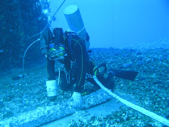 “我們在水下就像嬰兒,全靠這根臍帶供養(yǎng)。”張偉平告訴記者。
