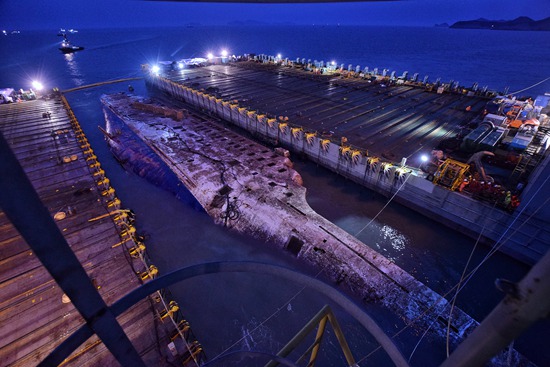 在打撈“世越號”的兩年間,潛水隊(duì)的隊(duì)員們每天都能看到,正對著失事海域的一處山頂上,遇難者家屬在那里支起一頂帳篷。直到沉船出水那天,帳篷才收起,結(jié)束漫長的守望。