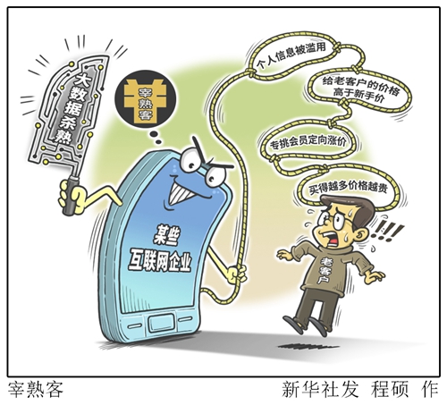 俗話說,人熟為寶。在傳統(tǒng)商業(yè)道德里,熟客應該享受優(yōu)待。然而,如今人們發(fā)現(xiàn),熟客往往頻頻挨宰:個人信息被濫用、給老客戶的價格高于新手價、專挑會員定向漲價、買得越多價格越貴……一些網(wǎng)絡平臺用大數(shù)據(jù)技術收集分析消費者偏好、消費能力等信息后,不約而同地把矛頭指向熟客,以至于有人感嘆“最懂你的人傷你最深”。