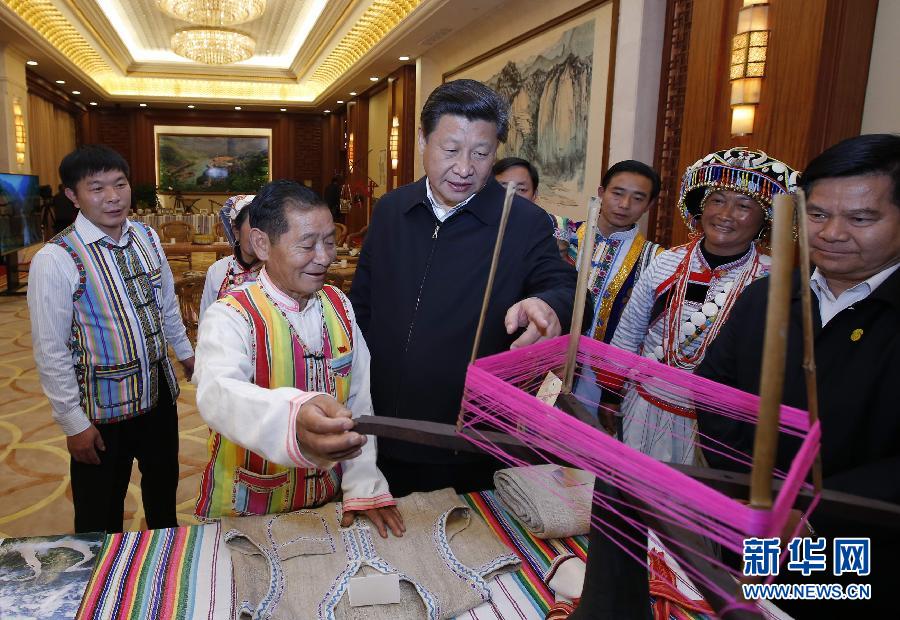 2015年1月20日,習(xí)近平向獨(dú)龍族群眾代表詢問民族特有生產(chǎn)工具使用情況