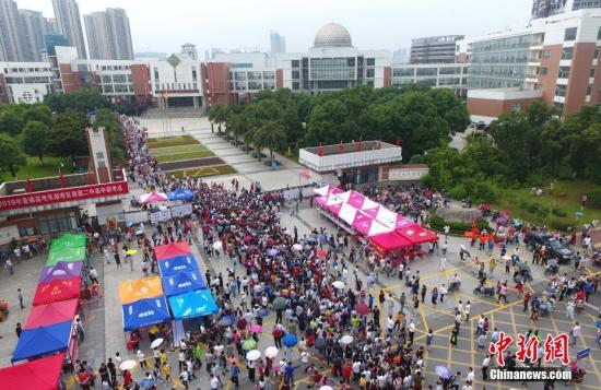 資料圖:高考首場考試結(jié)束后,考生有序走出考場,形成的隊伍猶如“長龍”。中新社記者 劉占昆 攝