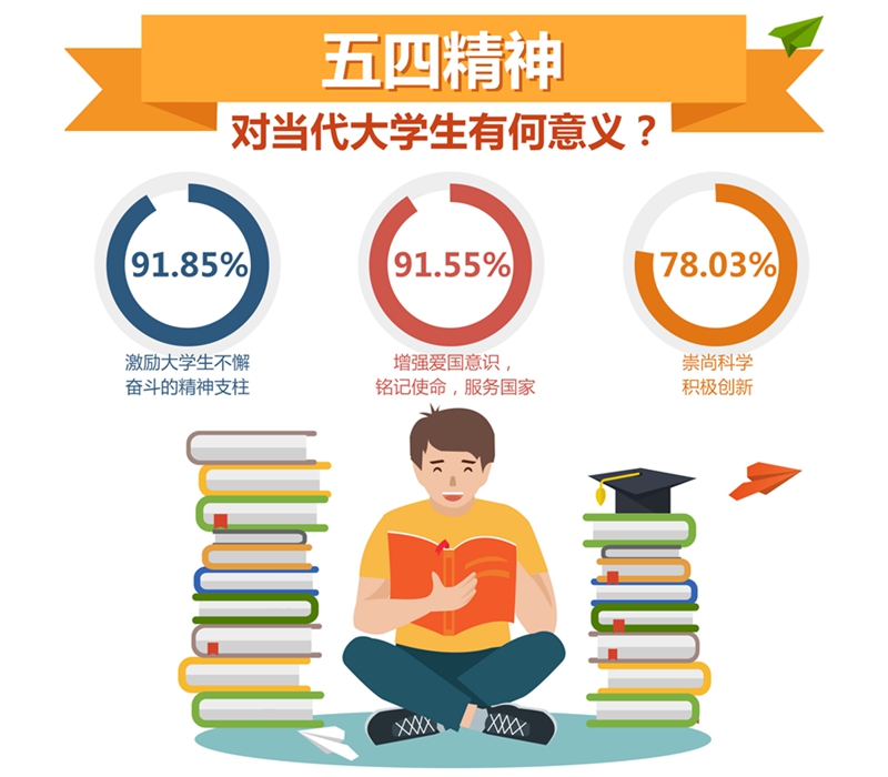漫步今天的北大校園,我們仿佛又聽(tīng)到穿越百年歷史時(shí)空的聲音。未名湖畔樹(shù)木蔥郁,博雅塔旁書(shū)香沁人,攜帶書(shū)籍的莘莘學(xué)子在校園內(nèi)急步而行。正如北京大學(xué)學(xué)生張棟杰所說(shuō):“青春是用寶貴的年華去做一件祖國(guó)需要的事,拼盡全力、毫無(wú)保留”。91.85%的受訪(fǎng)大學(xué)生認(rèn)為五四精神“是激勵(lì)大學(xué)生不懈奮斗的精神支柱”,91.55%的受訪(fǎng)大學(xué)生認(rèn)為五四精神“能增強(qiáng)愛(ài)國(guó)意識(shí),銘記使命,服務(wù)國(guó)家”。他們都認(rèn)為,這個(gè)時(shí)代可以有小我,但心中一定要有我們的祖國(guó),五四精神永不過(guò)時(shí)。
