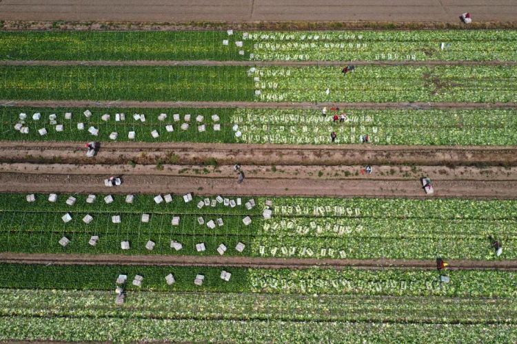 農(nóng)民們?cè)谌f物繁茂的夏天