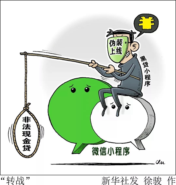 ——“套路貸”等違規(guī)App的“中轉(zhuǎn)站”。在多個(gè)互聯(lián)網(wǎng)公司的小程序中搜索“貸款”二字,填寫(xiě)相關(guān)職業(yè)、家庭、財(cái)產(chǎn)等信息后,半月談?dòng)浾呤盏搅藸I(yíng)銷(xiāo)人員的微信或QQ號(hào),添加后發(fā)現(xiàn)對(duì)方推薦的貸款工具實(shí)為“套路貸”。同時(shí)一些用戶反映,有的小程序成涉黃、涉賭的“中轉(zhuǎn)站”,通過(guò)小程序吸引人加入指定聊天群后,接下來(lái)的就是色情交易、賭博活動(dòng)等。