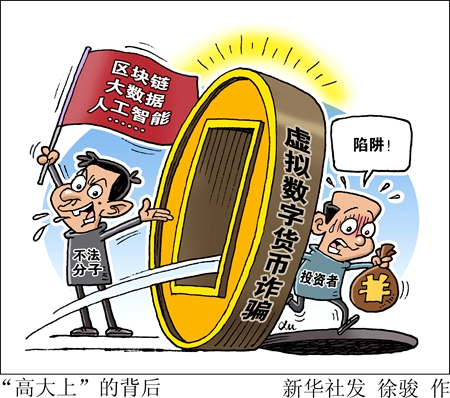 虛擬數(shù)字貨幣、區(qū)塊鏈、大數(shù)據(jù)、人工智能……近幾年流行起來(lái)的“高大上”新名詞,被一些不法分子“盯上”,包裝成了一個(gè)個(gè)騙局。湖南衡陽(yáng)公安機(jī)關(guān)日前破獲一起以虛擬數(shù)字貨幣為幌子的網(wǎng)絡(luò)詐騙案,涉案金額達(dá)3億余元,截至目前已有23人被刑事拘留。虛擬數(shù)字貨幣詐騙案的背后,隱藏著不少騙人的“套路”,應(yīng)引起警惕。有專家建議,對(duì)于這類(lèi)新興金融投資領(lǐng)域,還應(yīng)加強(qiáng)誠(chéng)信建設(shè)和規(guī)則制定。