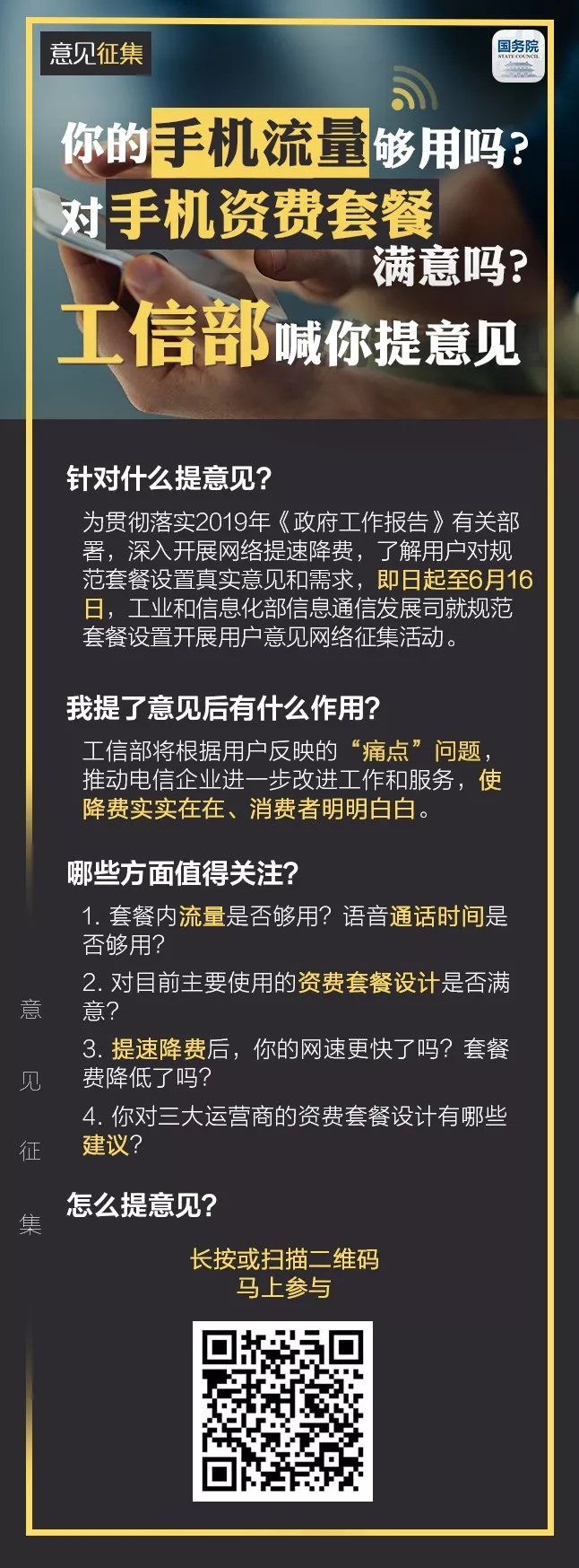 你的手機(jī)流量夠用嗎?對(duì)手機(jī)資費(fèi)套餐滿意嗎?工信部喊你提意見(jiàn)