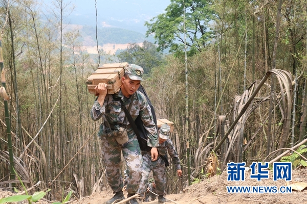 在云南麻栗坡,杜富國向雷場外轉運炸藥(2015年4月26日攝)。?新華社發(fā)(黃巧 攝)