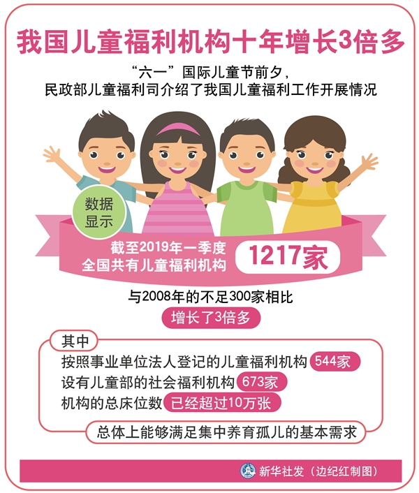 新華社北京5月31日電(記者羅爭光)“六一”國際兒童節(jié)前夕,民政部兒童福利司介紹了我國兒童福利工作開展情況。數(shù)據(jù)顯示,截至今年一季度,全國共有兒童福利機構1217家,與2008年的不足300家相比,增長了3倍多。