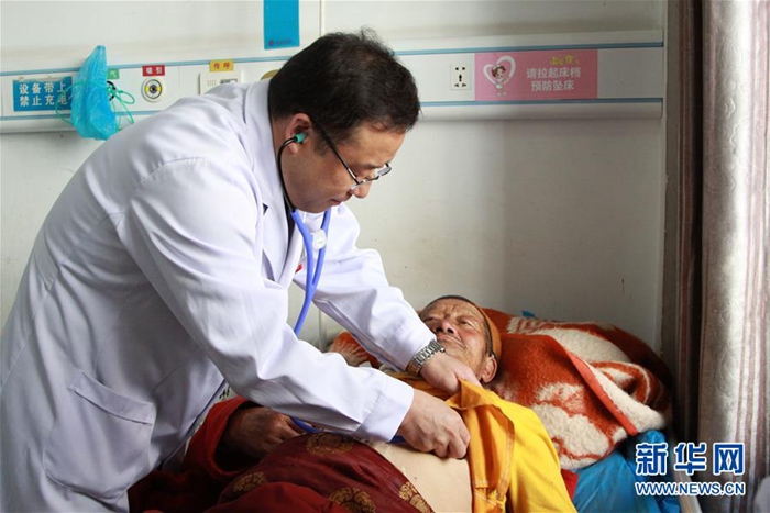 這是來(lái)自北京的援青干部劉云軍為患者診療(資料照片)。新華社發(fā)