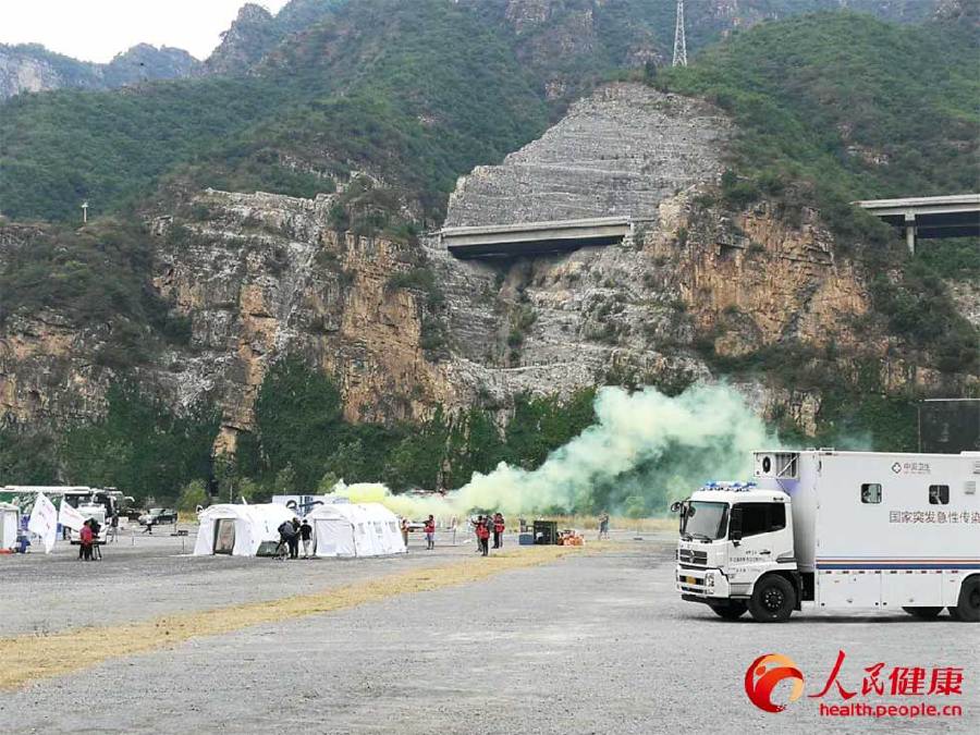 演練現(xiàn)場共調(diào)集緊急醫(yī)學(xué)救援、突發(fā)急性傳染病防控、突發(fā)中毒事件處置3類6支國家衛(wèi)生應(yīng)急隊(duì)伍,動(dòng)用制式衛(wèi)生應(yīng)急車輛150余臺、模塊化醫(yī)療救治帳篷40余頂、救援直升機(jī)1架,共有京津冀22家醫(yī)療衛(wèi)生單位的330余人參加了演練。