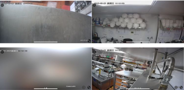 記者發(fā)現(xiàn),有的餐廳后廚既不透明也無(wú)監(jiān)控,有的安裝了監(jiān)控卻“失靈”。在“牧之初心”餐廳,其后廚監(jiān)控畫(huà)面多數(shù)為黑屏,有的畫(huà)面顯示“無(wú)網(wǎng)絡(luò)視頻”。記者隨后對(duì)多家飯店走訪發(fā)現(xiàn),屏幕“失靈”者不在少數(shù),解釋原因多為“壞了”“網(wǎng)絡(luò)不好”。