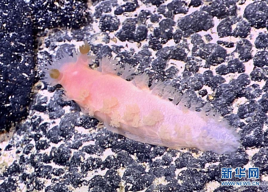 “發(fā)現(xiàn)”號遙控無人潛水器在海山拍攝到的海兔(5月27日攝)。新華社發(fā)