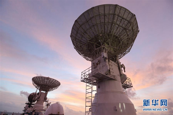 6月25日拍攝的遠(yuǎn)望3號(hào)船海上測(cè)控的雷達(dá)天線。新華社記者 李雨澤 攝