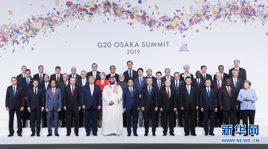 6月28日,二十國集團(tuán)領(lǐng)導(dǎo)人第十四次峰會在日本大阪舉行。國家主席習(xí)近平出席并發(fā)表題為《攜手共進(jìn),合力打造高質(zhì)量世界經(jīng)濟(jì)》的重要講話。這是習(xí)近平同其他與會領(lǐng)導(dǎo)人合影。新華社記者 黃敬文 攝