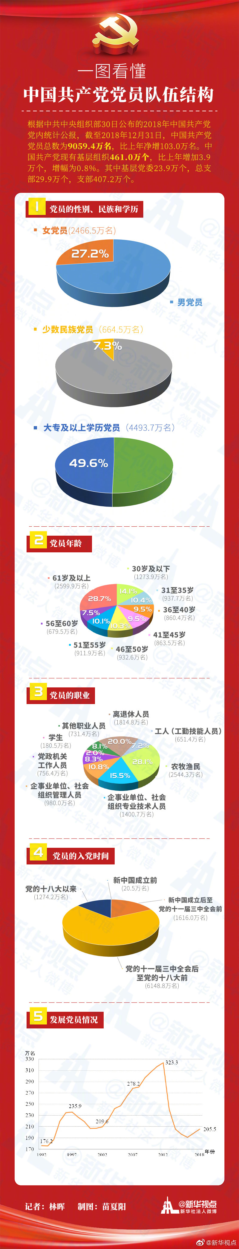 ???中國(guó)共產(chǎn)黨隊(duì)伍穩(wěn)步壯大:黨員9059.4萬名 基層黨組織461.0萬