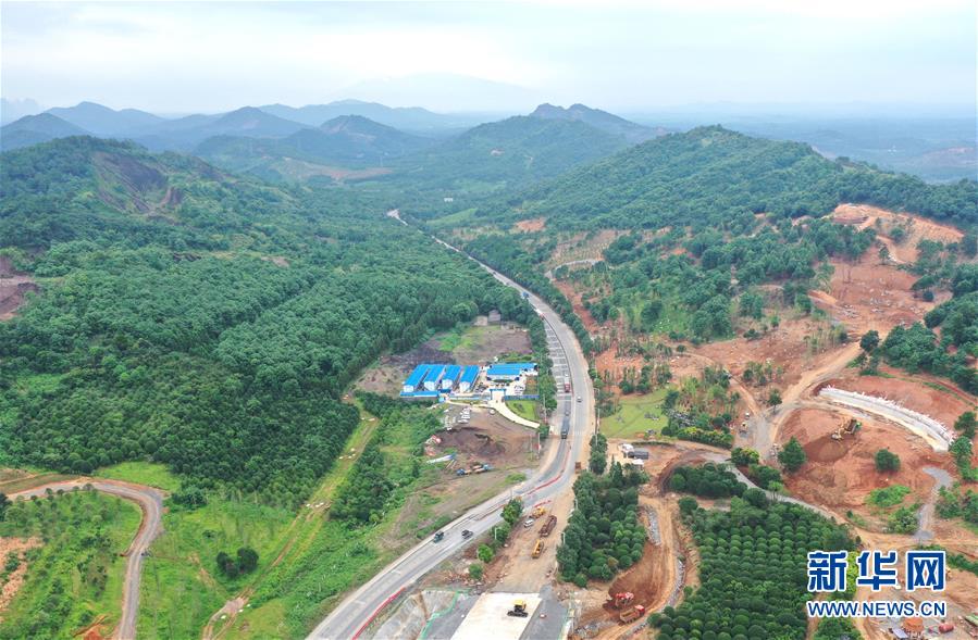 全州縣鳳凰嘴渡口正在修建的大橋(6月29日無人機拍攝)。新華社記者 周華 攝