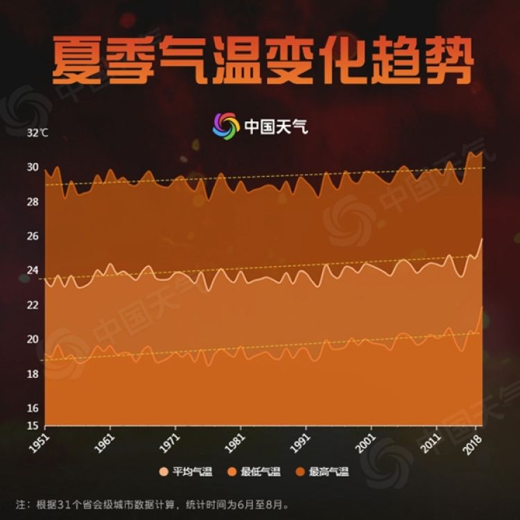夏天真的越來越熱了嗎?中國天氣網統(tǒng)計了1951年以來全國夏季年平均氣溫發(fā)現,無論平均氣溫、最高氣溫還是最低氣溫均出現上升趨勢,越來越熱并非錯覺。