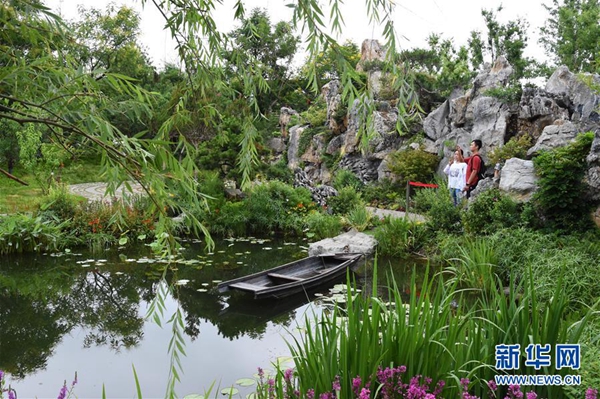 7月7日,游客在湖南園中參觀。當(dāng)日,2019年中國北京世界園藝博覽會(huì)“湖南日”活動(dòng)在北京世園會(huì)園區(qū)舉行。新華社發(fā)(任超 攝)