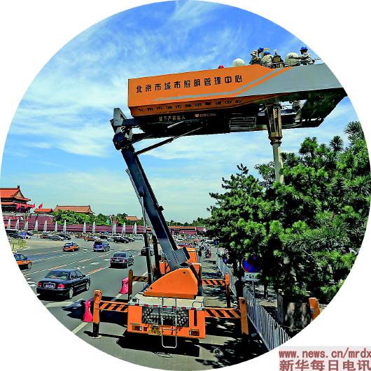 60年來,華燈的外觀從未改變。但里面的燈具、燈桿、管線等早已發(fā)生天翻地覆的變化。“這變與不變,正是科技制造水平的日益提升、祖國日益強大的體現(xiàn)。”宋曉龍說。