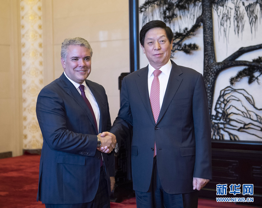 7月31日,全國人大常委會(huì)委員長栗戰(zhàn)書在北京人民大會(huì)堂會(huì)見哥倫比亞總統(tǒng)杜克。 新華社記者 李濤 攝