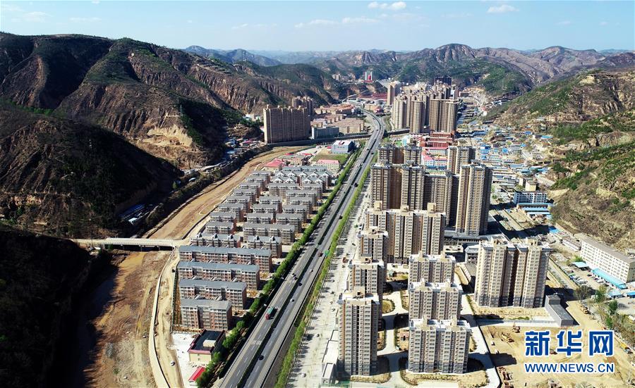 陜西延安安塞區(qū)的惠澤園移民搬遷安置小區(qū)(4月23日無人機拍攝)。新華社記者 劉瀟 攝
