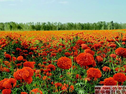 莎車集中連片種植的萬(wàn)壽菊宛如“花的海洋”。