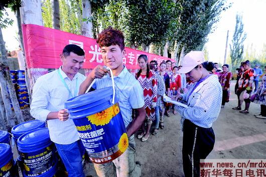 2019年7月,晨光生物免費(fèi)向種植戶發(fā)放液體菊花素活性菌肥。