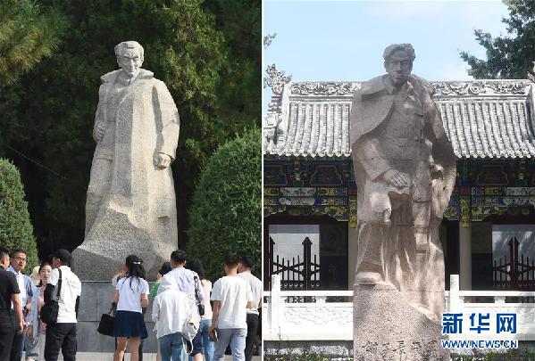 拼版照片左圖為劉志丹烈士陵園內(nèi)的劉志丹雕像(8月8日攝);右圖為子長烈士紀(jì)念館內(nèi)的謝子長雕像(8月9日攝)。新華社記者 羅曉光 攝
