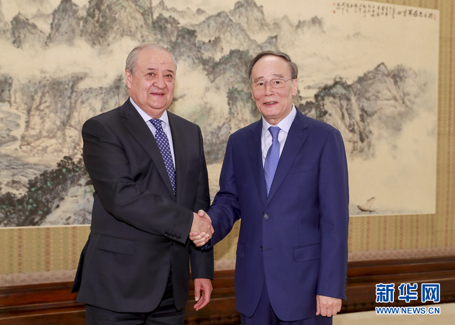 8月19日,國(guó)家副主席王岐山在北京中南海會(huì)見烏茲別克斯坦外長(zhǎng)卡米洛夫。新華社記者 丁林 攝