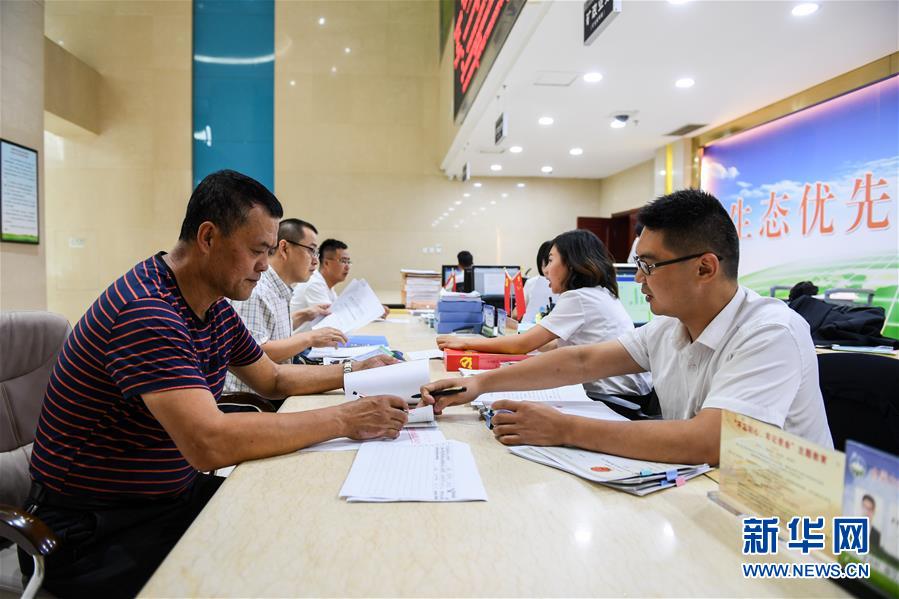 8月19日,內(nèi)蒙古自治區(qū)自然資源政務大廳的工作人員在辦理審批手續(xù)。新華社記者 劉磊 攝