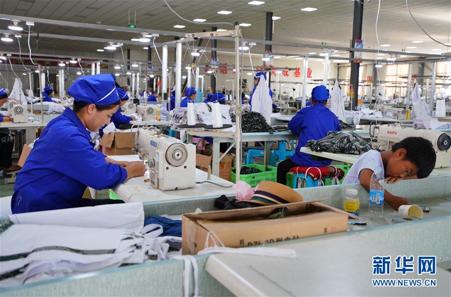 8月29日,村民在甘肅省臨夏回族自治州東鄉(xiāng)族自治縣鎖南鎮(zhèn)一扶貧車間工作。 甘肅臨夏回族自治州東鄉(xiāng)族自治縣,屬于我國(guó) “三區(qū)三州”深度貧困地區(qū),是“貧中之貧,困中之困”。近年來(lái),為了讓遷入易地扶貧安置點(diǎn)的貧困戶搬得出、住得下、有收入,東鄉(xiāng)縣加大在安置點(diǎn)附近建設(shè)扶貧車間的力度,同時(shí)以“帶薪培訓(xùn)三個(gè)月”方式,把技能培訓(xùn)、工作崗位“送”到貧困戶家門口。貧困群眾在家門口上崗就業(yè)獲得一份穩(wěn)定收入,實(shí)現(xiàn)就業(yè)、務(wù)農(nóng)、顧家三不誤。 新華社記者 陳君清 攝