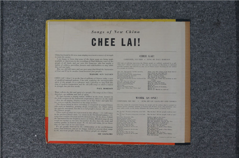 這第二張唱片是美國(guó)黑人歌手保羅·羅伯遜于1941年所灌制的《CheeLai》。單看這個(gè)封面上的英文字母,我們就能讀出兩個(gè)字——起來(lái)!